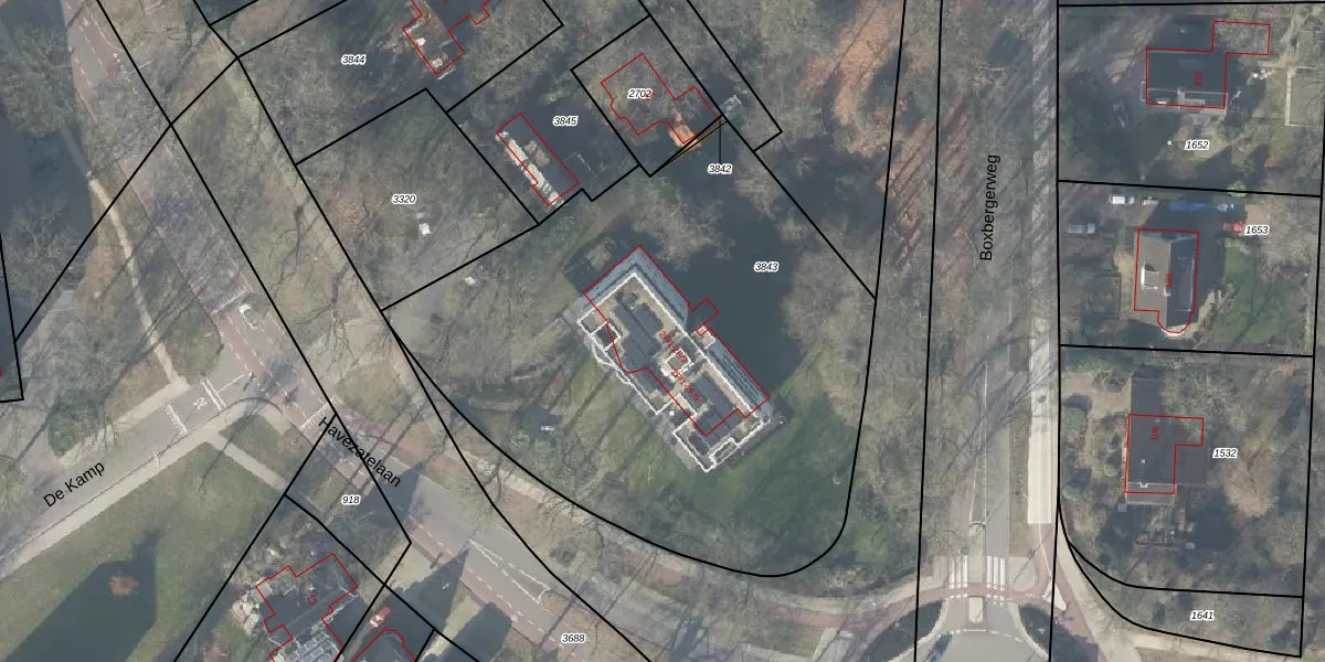 Het perceel waarop Havezatelaan 2-F-6 staat heeft een oppervlakte van 3134 m². Dit is een zeer groot perceel. De perceeloppervlakte wordt geregistreerd door het Kadaster. Gedetailleerde informatie over de maten van dit perceel kunt u vinden in het rapport Kadastrale kaart met maatvoering van Havezatelaan 2-F-6.