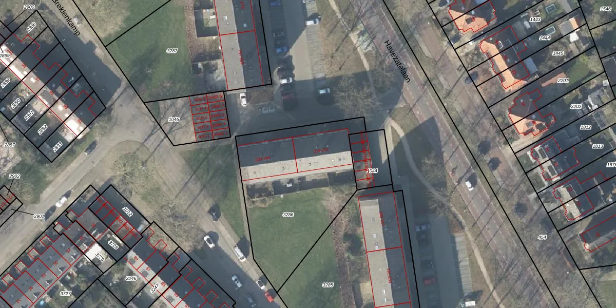 Het perceel waarop Havezatelaan 227 staat heeft een oppervlakte van 1447 m². Dit is een zeer groot perceel. De perceeloppervlakte wordt geregistreerd door het Kadaster. Gedetailleerde informatie over de maten van dit perceel kunt u vinden in het rapport Kadastrale kaart met maatvoering van Havezatelaan 227.