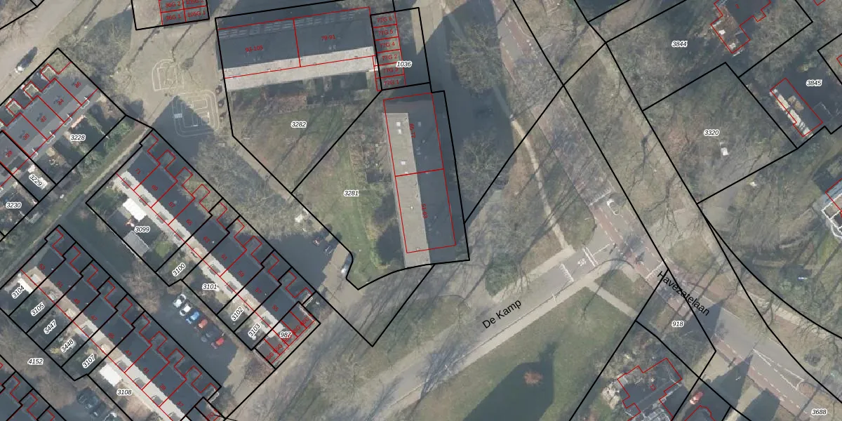 Het perceel waarop Havezatelaan 59 staat heeft een oppervlakte van 1286 m². Dit is een zeer groot perceel. De perceeloppervlakte wordt geregistreerd door het Kadaster. Gedetailleerde informatie over de maten van dit perceel kunt u vinden in het rapport Kadastrale kaart met maatvoering van Havezatelaan 59.