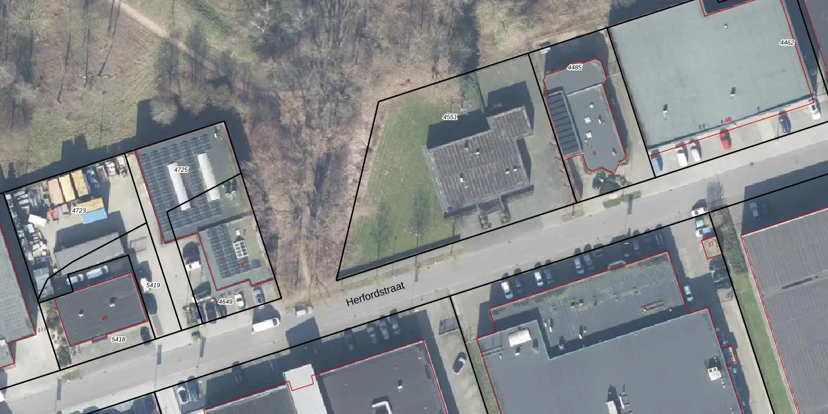 Het perceel waarop Herfordstraat 8 staat heeft een oppervlakte van 1881 m². Dit is een zeer groot perceel. De perceeloppervlakte wordt geregistreerd door het Kadaster. Gedetailleerde informatie over de maten van dit perceel kunt u vinden in het rapport Kadastrale kaart met maatvoering van Herfordstraat 8.
