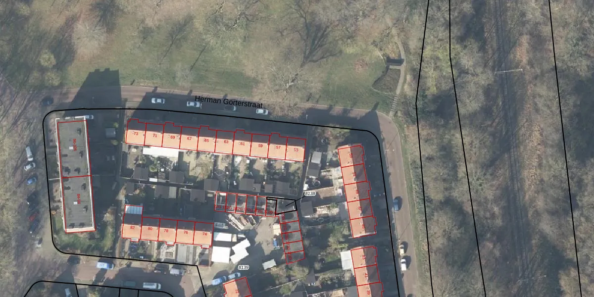 Het perceel waarop Herman Gorterstraat 55 staat heeft een oppervlakte van 1,1 ha. Dit is een zeer groot perceel. De perceeloppervlakte wordt geregistreerd door het Kadaster. Gedetailleerde informatie over de maten van dit perceel kunt u vinden in het rapport Kadastrale kaart met maatvoering van Herman Gorterstraat 55.