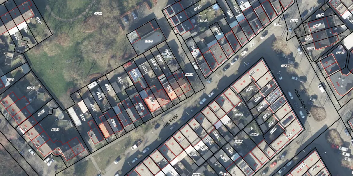 Gebruik de zoekbalk of klik op een perceel voor informatie over de adressen binnen dit perceel.