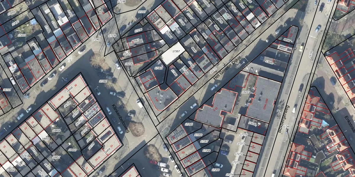 Het Groene Dijkje 1 is gelegen op kadastraal perceel DVT00B17360. Deze kadastrale aanduiding is uniek en wordt gebruikt door het Kadaster om eigendomsrechten en andere zakelijke rechten vast te leggen. Het perceel maakt onderdeel uit van de kadastrale gemeente Deventer.