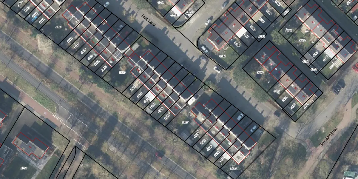 Gebruik de zoekbalk of klik op een perceel voor informatie over de adressen binnen dit perceel.