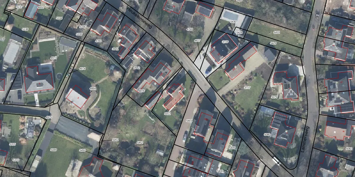Gebruik de zoekbalk of klik op een perceel voor informatie over de adressen binnen dit perceel.