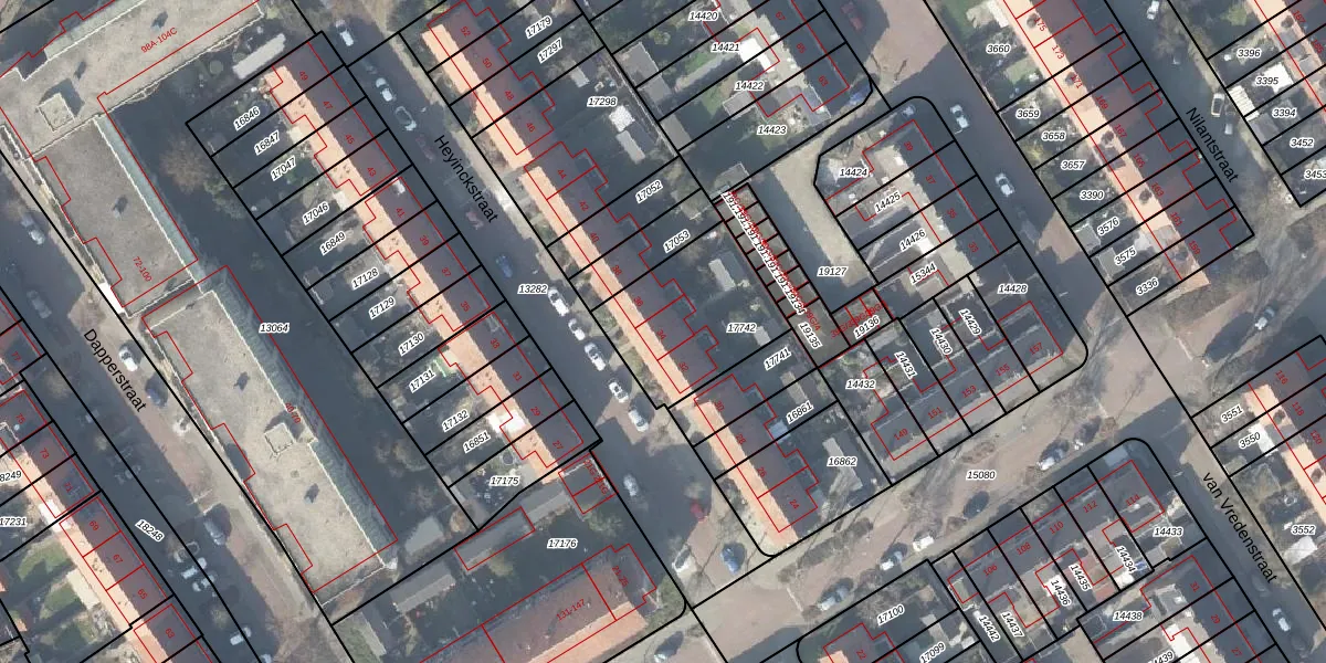 Het perceel waarop Heyinckstraat 34 staat heeft een oppervlakte van 459 m². Dit is een groot perceel. De perceeloppervlakte wordt geregistreerd door het Kadaster. Gedetailleerde informatie over de maten van dit perceel kunt u vinden in het rapport Kadastrale kaart met maatvoering van Heyinckstraat 34.
