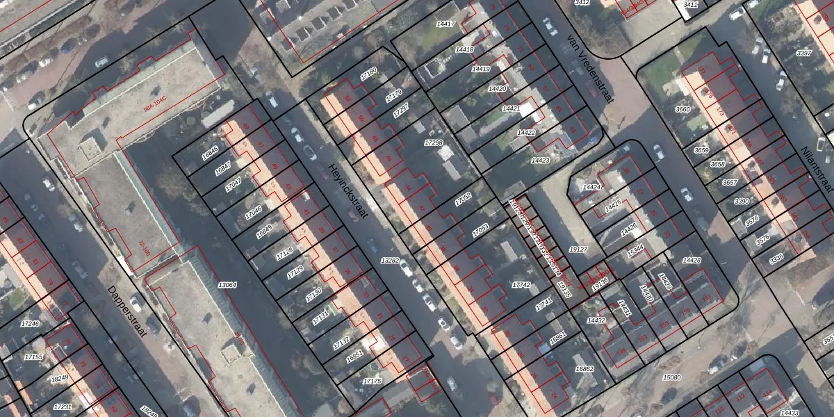 Het perceel waarop Heyinckstraat 42 staat heeft een oppervlakte van 496 m². Dit is een groot perceel. De perceeloppervlakte wordt geregistreerd door het Kadaster. Gedetailleerde informatie over de maten van dit perceel kunt u vinden in het rapport Kadastrale kaart met maatvoering van Heyinckstraat 42.