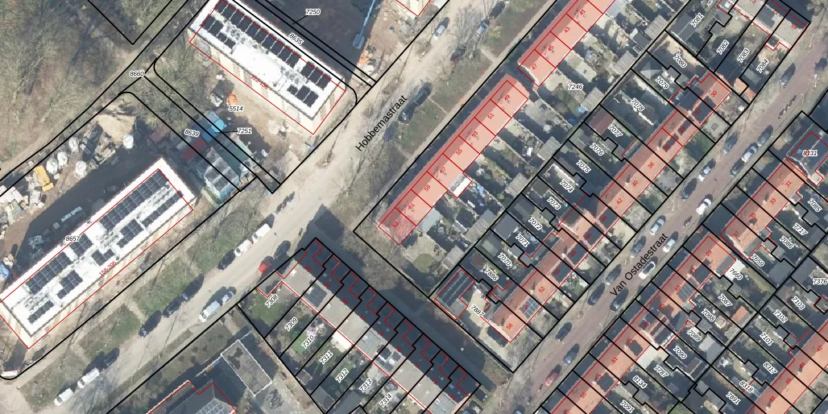 Het perceel waarop Hobbemastraat 61 staat heeft een oppervlakte van 2600 m². Dit is een zeer groot perceel. De perceeloppervlakte wordt geregistreerd door het Kadaster. Gedetailleerde informatie over de maten van dit perceel kunt u vinden in het rapport Kadastrale kaart met maatvoering van Hobbemastraat 61.