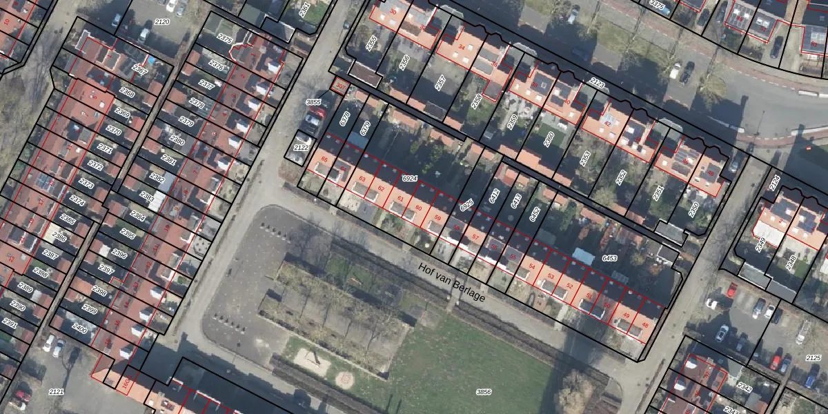 Het perceel waarop Hof van Berlage 60 staat heeft een oppervlakte van 725 m². Dit is een groot perceel. De perceeloppervlakte wordt geregistreerd door het Kadaster. Gedetailleerde informatie over de maten van dit perceel kunt u vinden in het rapport Kadastrale kaart met maatvoering van Hof van Berlage 60.