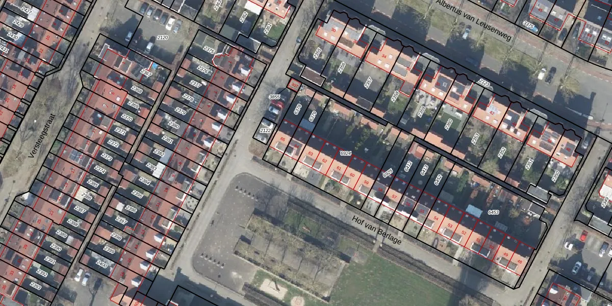 Het perceel waarop Hof van Berlage 63 staat heeft een oppervlakte van 725 m². Dit is een groot perceel. De perceeloppervlakte wordt geregistreerd door het Kadaster. Gedetailleerde informatie over de maten van dit perceel kunt u vinden in het rapport Kadastrale kaart met maatvoering van Hof van Berlage 63.