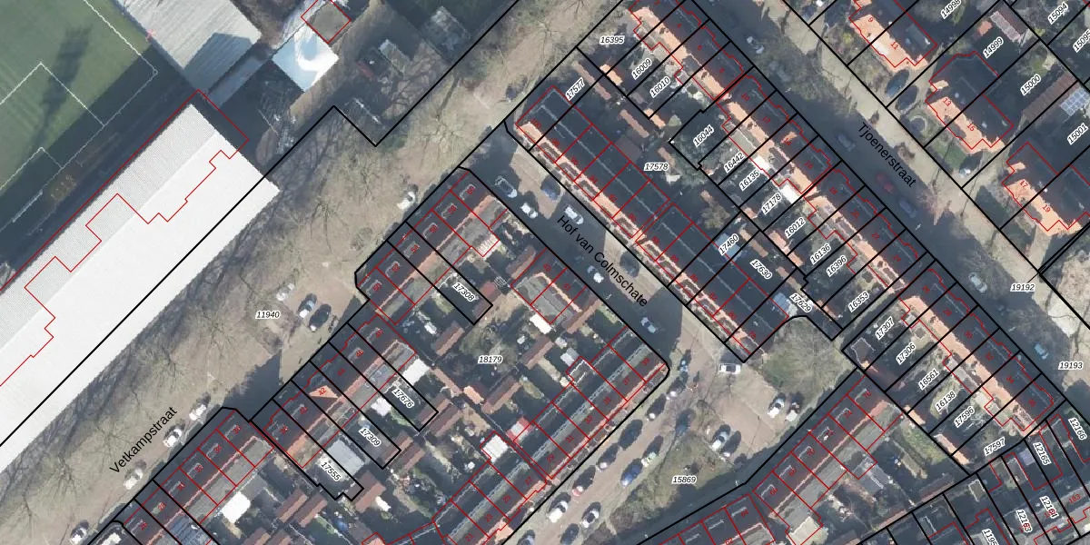 Het perceel waarop Hof van Colmschate 43 staat heeft een oppervlakte van 3547 m². Dit is een zeer groot perceel. De perceeloppervlakte wordt geregistreerd door het Kadaster. Gedetailleerde informatie over de maten van dit perceel kunt u vinden in het rapport Kadastrale kaart met maatvoering van Hof van Colmschate 43.