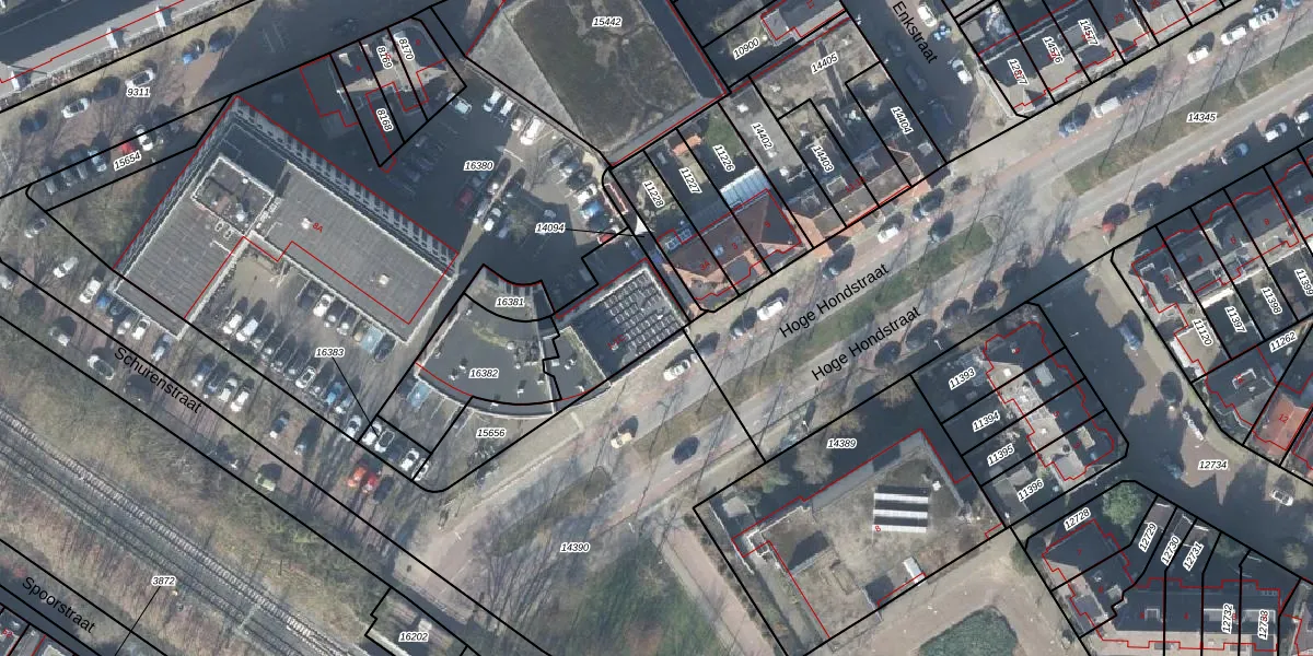 Het perceel waarop Hoge Hondstraat 1-C staat heeft een oppervlakte van 450 m². Dit is een groot perceel. De perceeloppervlakte wordt geregistreerd door het Kadaster. Gedetailleerde informatie over de maten van dit perceel kunt u vinden in het rapport Kadastrale kaart met maatvoering van Hoge Hondstraat 1-C.