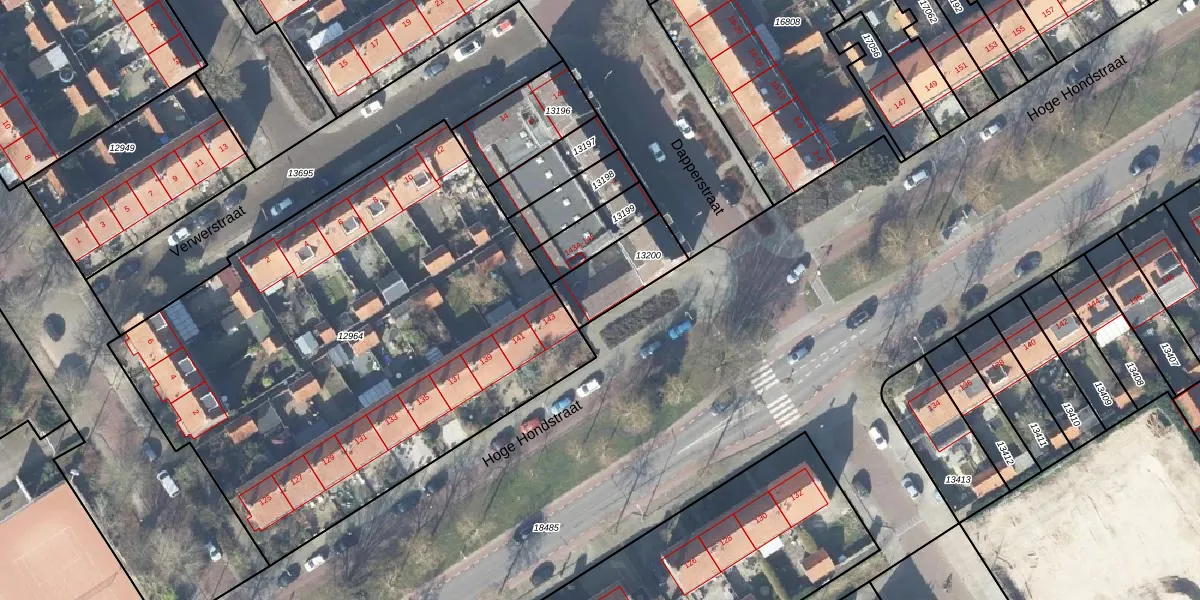 Het perceel waarop Hoge Hondstraat 145 staat heeft een oppervlakte van 199 m². Dit is een middelgroot perceel. De perceeloppervlakte wordt geregistreerd door het Kadaster. Gedetailleerde informatie over de maten van dit perceel kunt u vinden in het rapport Kadastrale kaart met maatvoering van Hoge Hondstraat 145.