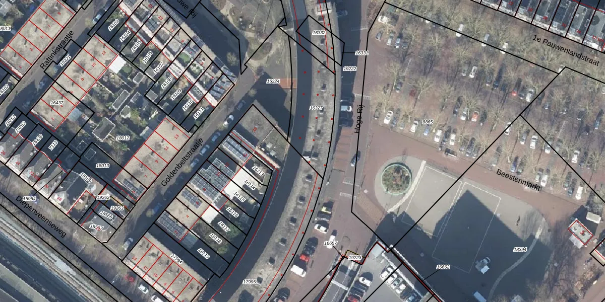 Het perceel waarop Hoge Rij 101 staat heeft een oppervlakte van 496 m². Dit is een groot perceel. De perceeloppervlakte wordt geregistreerd door het Kadaster. Gedetailleerde informatie over de maten van dit perceel kunt u vinden in het rapport Kadastrale kaart met maatvoering van Hoge Rij 101.