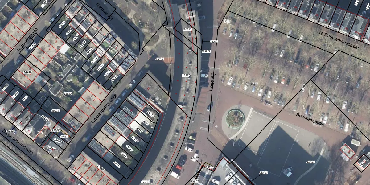 Het perceel waarop Hoge Rij 105 staat heeft een oppervlakte van 496 m². Dit is een groot perceel. De perceeloppervlakte wordt geregistreerd door het Kadaster. Gedetailleerde informatie over de maten van dit perceel kunt u vinden in het rapport Kadastrale kaart met maatvoering van Hoge Rij 105.