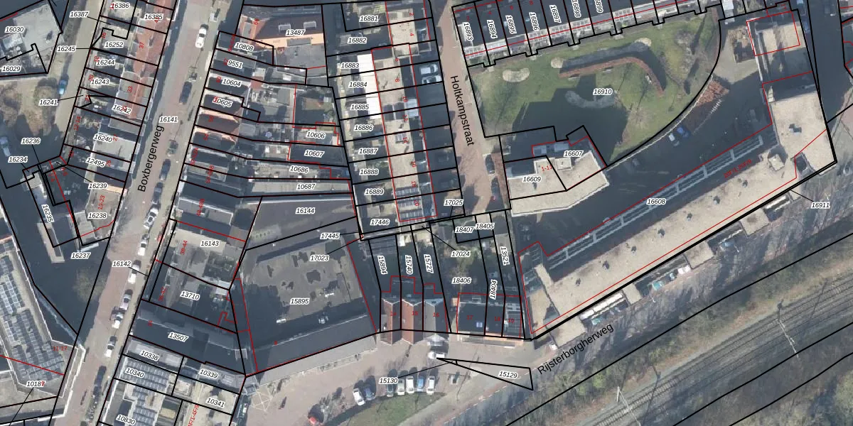 Gebruik de zoekbalk of klik op een perceel voor informatie over de adressen binnen dit perceel.