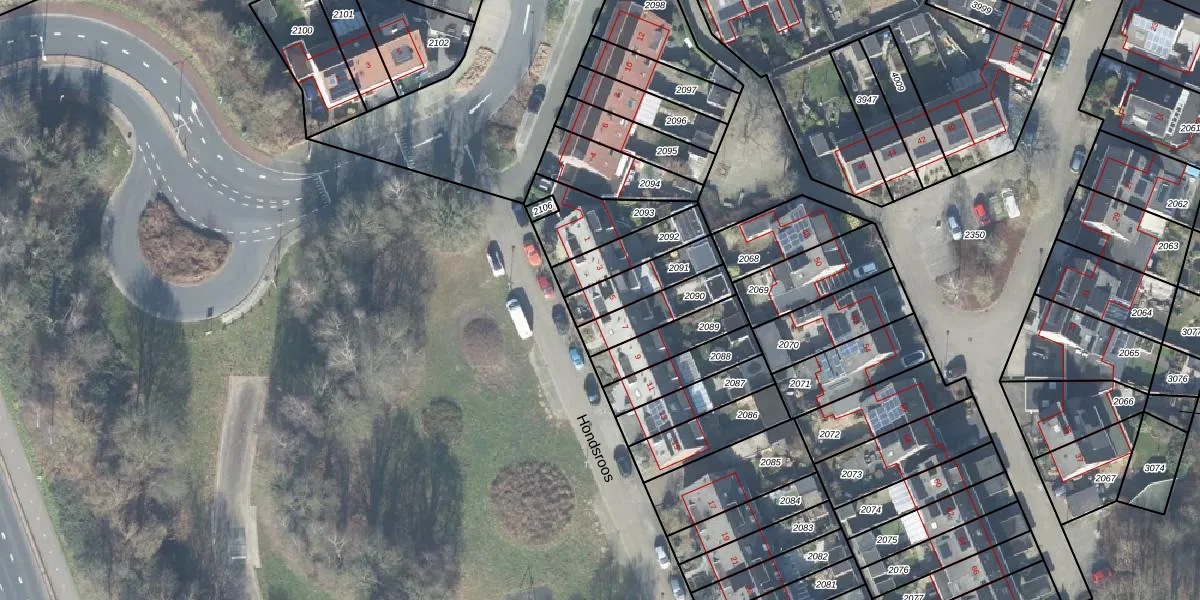 Gebruik de zoekbalk of klik op een perceel voor informatie over de adressen binnen dit perceel.