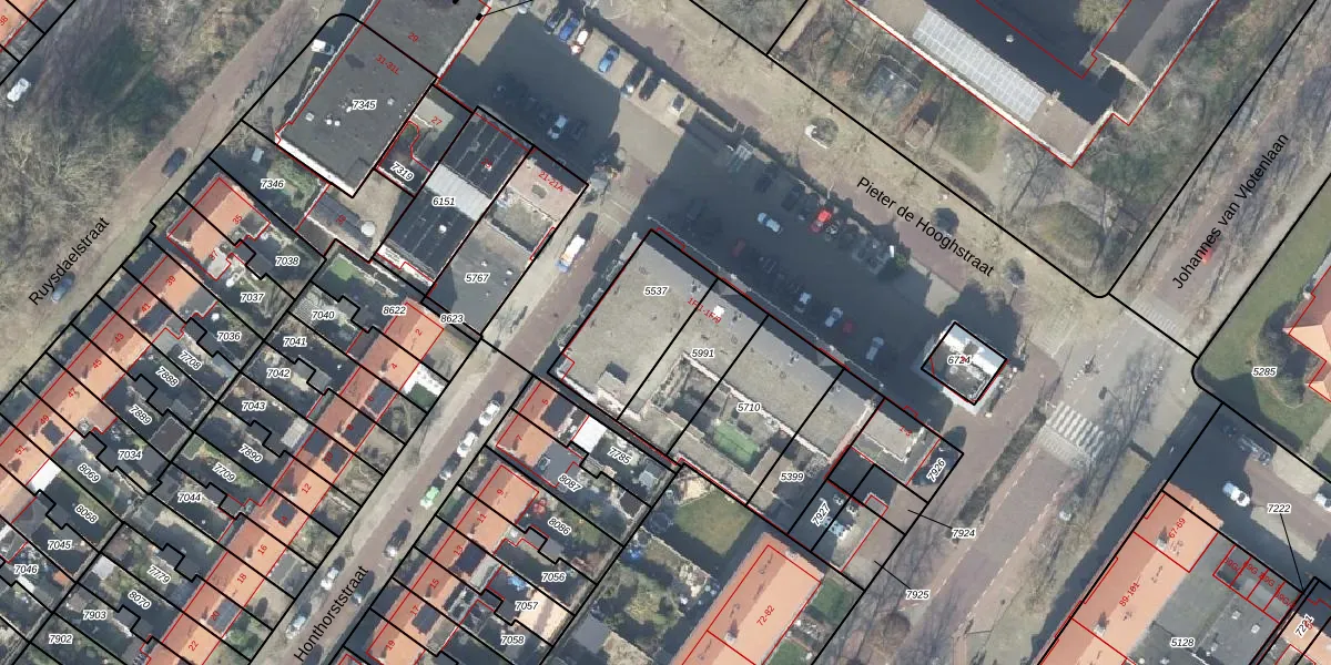 Het perceel waarop Honthorststraat 1-F-9 staat heeft een oppervlakte van 332 m². Dit is een groot perceel. De perceeloppervlakte wordt geregistreerd door het Kadaster. Gedetailleerde informatie over de maten van dit perceel kunt u vinden in het rapport Kadastrale kaart met maatvoering van Honthorststraat 1-F-9.