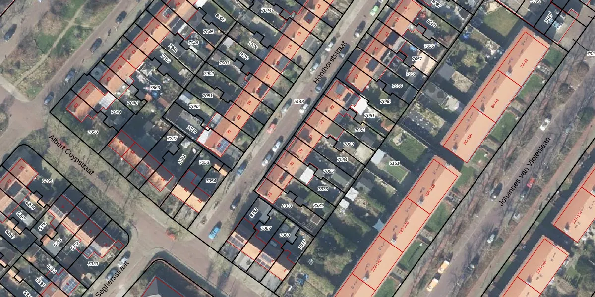 Het perceel waarop Honthorststraat 29 staat heeft een oppervlakte van 149 m². Dit is een middelgroot perceel. De perceeloppervlakte wordt geregistreerd door het Kadaster. Gedetailleerde informatie over de maten van dit perceel kunt u vinden in het rapport Kadastrale kaart met maatvoering van Honthorststraat 29.
