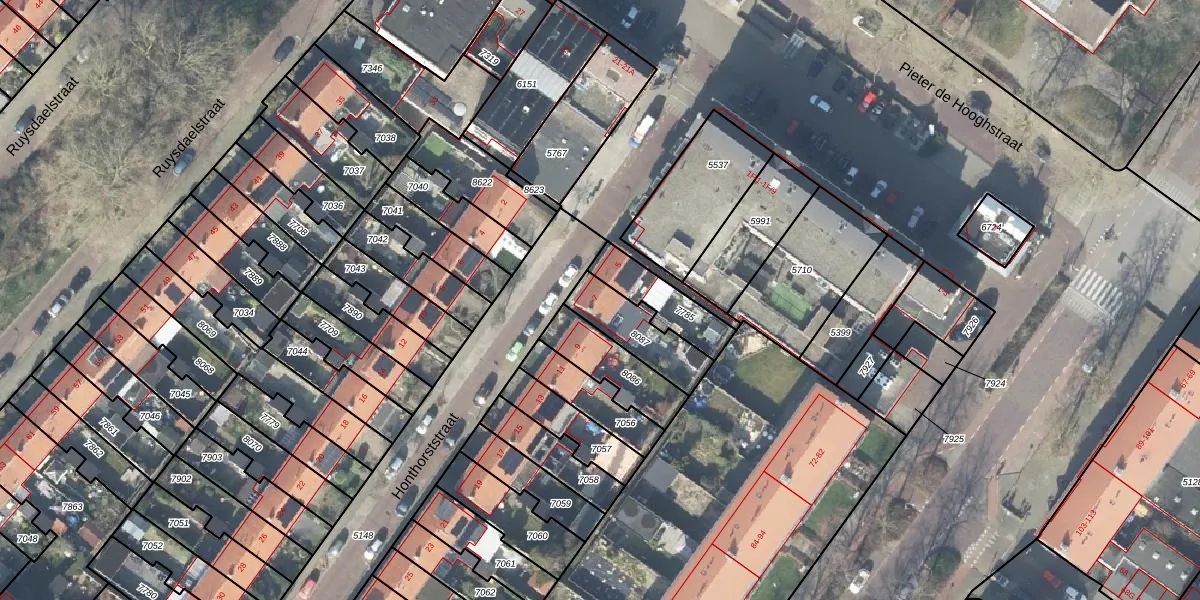 Het perceel waarop Honthorststraat 7 staat heeft een oppervlakte van 183 m². Dit is een middelgroot perceel. De perceeloppervlakte wordt geregistreerd door het Kadaster. Gedetailleerde informatie over de maten van dit perceel kunt u vinden in het rapport Kadastrale kaart met maatvoering van Honthorststraat 7.