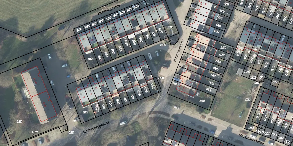 Hoornikgaarde 1 is gelegen op kadastraal perceel DVT00F2181. Deze kadastrale aanduiding is uniek en wordt gebruikt door het Kadaster om eigendomsrechten en andere zakelijke rechten vast te leggen. Het perceel maakt onderdeel uit van de kadastrale gemeente Deventer.