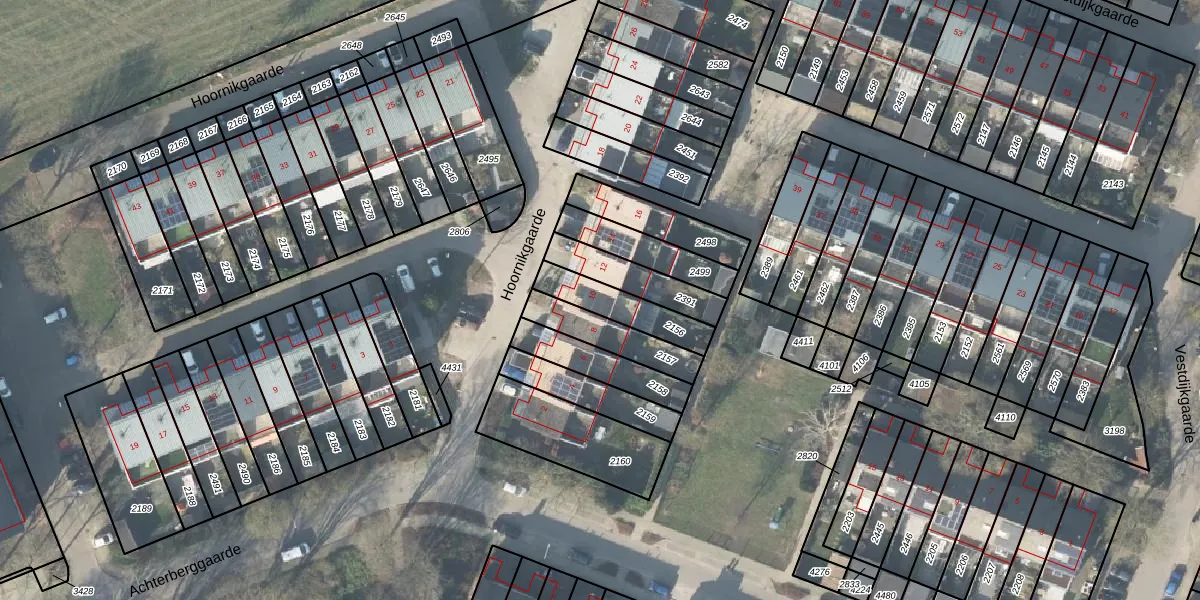 Gebruik de zoekbalk of klik op een perceel voor informatie over de adressen binnen dit perceel.