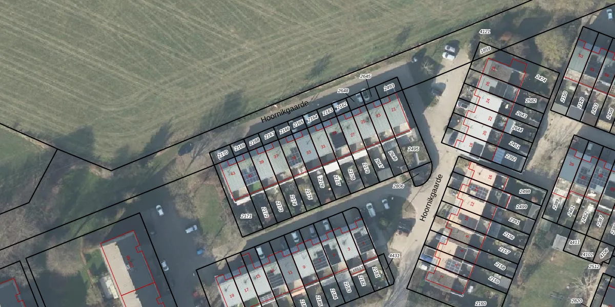 Hoornikgaarde 33 is gelegen op kadastraal perceel DVT00F2176. Deze kadastrale aanduiding is uniek en wordt gebruikt door het Kadaster om eigendomsrechten en andere zakelijke rechten vast te leggen. Het perceel maakt onderdeel uit van de kadastrale gemeente Deventer.