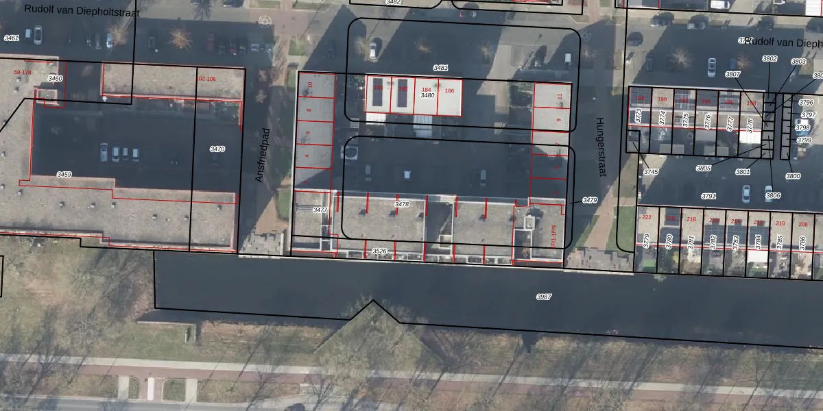 Het perceel waarop Hungerstraat 1-F-15 staat heeft een oppervlakte van 1365 m². Dit is een zeer groot perceel. De perceeloppervlakte wordt geregistreerd door het Kadaster. Gedetailleerde informatie over de maten van dit perceel kunt u vinden in het rapport Kadastrale kaart met maatvoering van Hungerstraat 1-F-15.