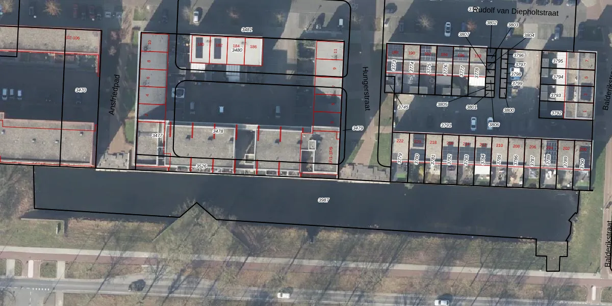 Het perceel waarop Hungerstraat 1-F-28 staat heeft een oppervlakte van 1365 m². Dit is een zeer groot perceel. De perceeloppervlakte wordt geregistreerd door het Kadaster. Gedetailleerde informatie over de maten van dit perceel kunt u vinden in het rapport Kadastrale kaart met maatvoering van Hungerstraat 1-F-28.