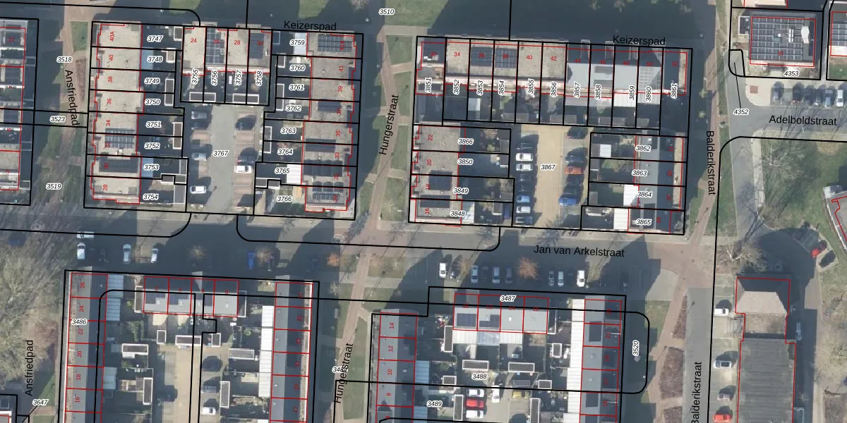 Gebruik de zoekbalk of klik op een perceel voor informatie over de adressen binnen dit perceel.