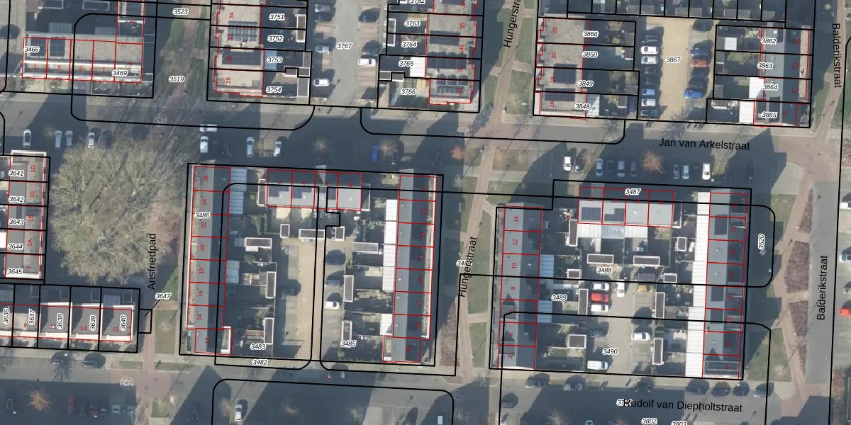 Het perceel waarop Hungerstraat 25 staat heeft een oppervlakte van 1098 m². Dit is een zeer groot perceel. De perceeloppervlakte wordt geregistreerd door het Kadaster. Gedetailleerde informatie over de maten van dit perceel kunt u vinden in het rapport Kadastrale kaart met maatvoering van Hungerstraat 25.