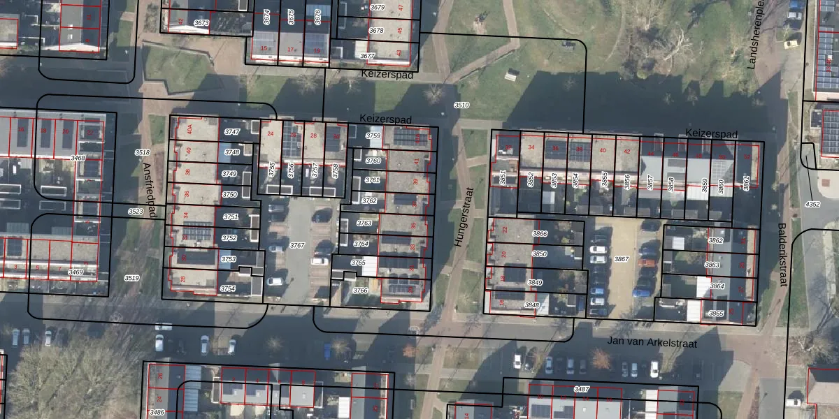 Gebruik de zoekbalk of klik op een perceel voor informatie over de adressen binnen dit perceel.
