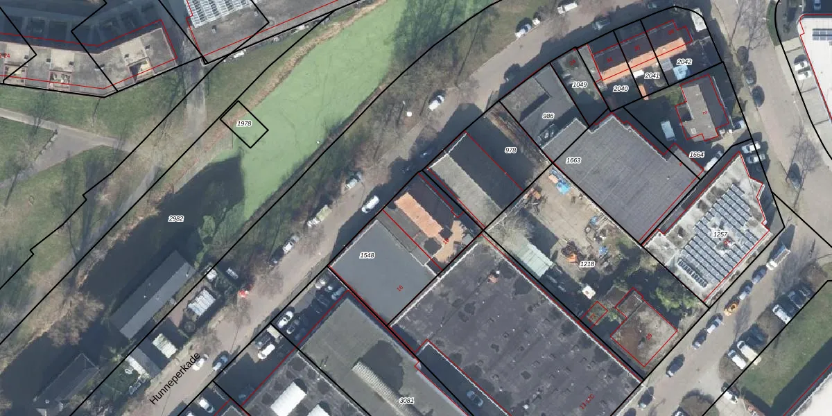 Het perceel waarop Hunneperkade 18 staat heeft een oppervlakte van 672 m². Dit is een groot perceel. De perceeloppervlakte wordt geregistreerd door het Kadaster. Gedetailleerde informatie over de maten van dit perceel kunt u vinden in het rapport Kadastrale kaart met maatvoering van Hunneperkade 18.