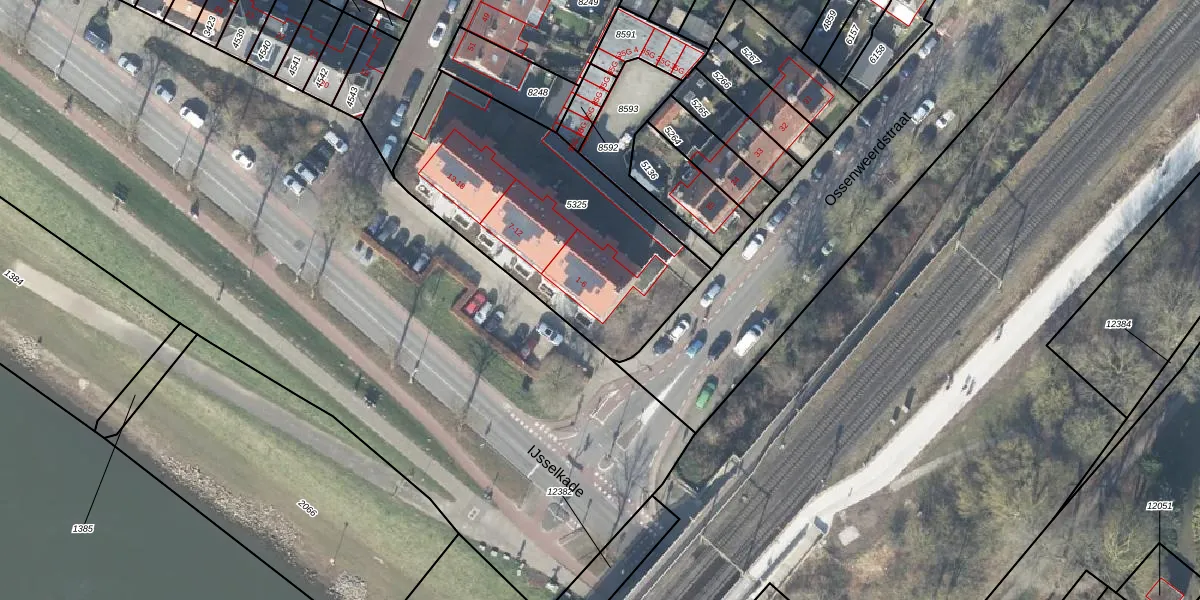 IJsselkade 1 is gelegen op kadastraal perceel DVT00A5325. Deze kadastrale aanduiding is uniek en wordt gebruikt door het Kadaster om eigendomsrechten en andere zakelijke rechten vast te leggen. Het perceel maakt onderdeel uit van de kadastrale gemeente Deventer.