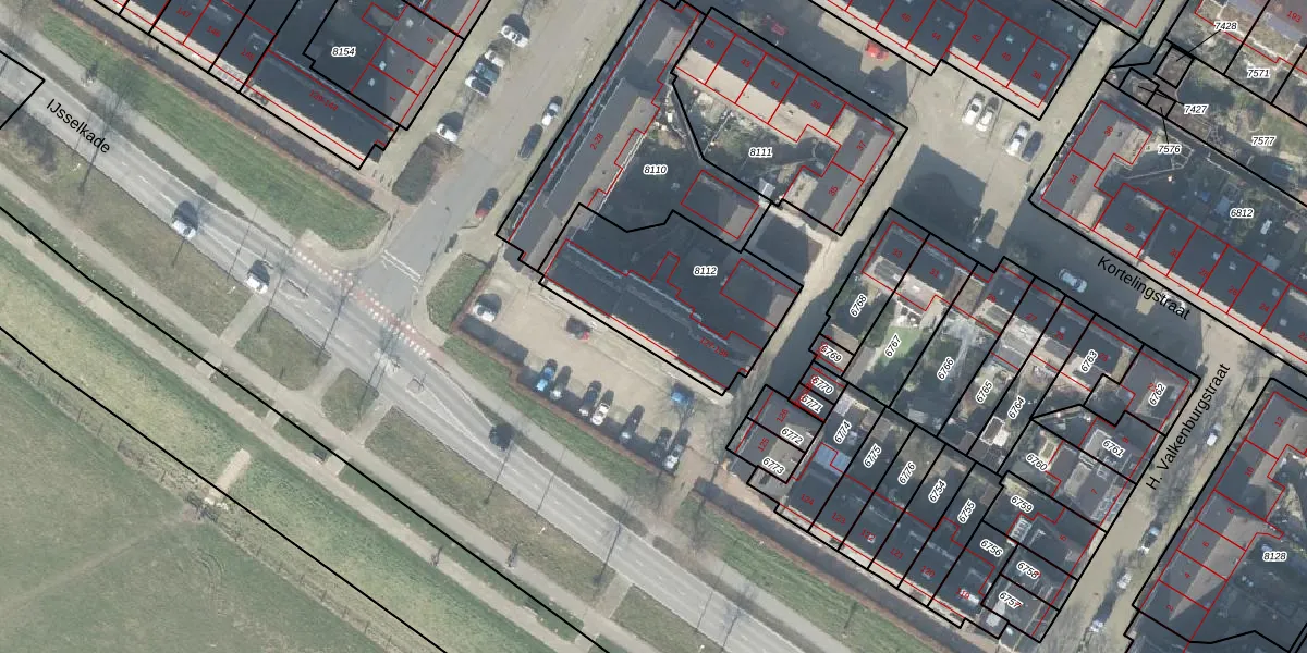 Het perceel waarop IJsselkade 132 staat heeft een oppervlakte van 642 m². Dit is een groot perceel. De perceeloppervlakte wordt geregistreerd door het Kadaster. Gedetailleerde informatie over de maten van dit perceel kunt u vinden in het rapport Kadastrale kaart met maatvoering van IJsselkade 132.