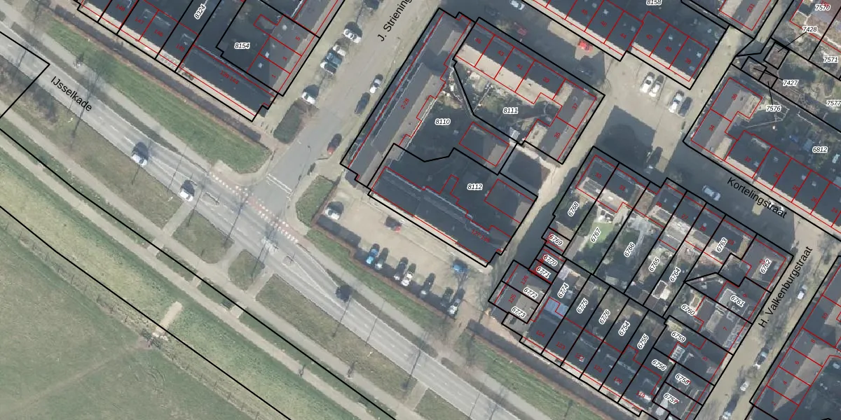 Het perceel waarop IJsselkade 134 staat heeft een oppervlakte van 642 m². Dit is een groot perceel. De perceeloppervlakte wordt geregistreerd door het Kadaster. Gedetailleerde informatie over de maten van dit perceel kunt u vinden in het rapport Kadastrale kaart met maatvoering van IJsselkade 134.