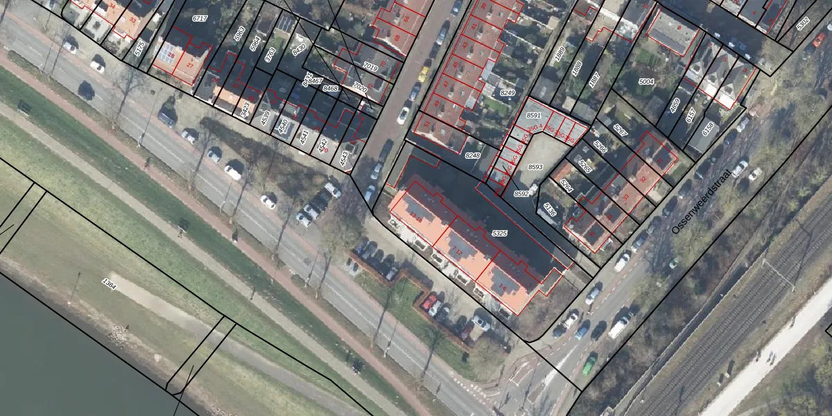 Het perceel waarop IJsselkade 16 staat heeft een oppervlakte van 1185 m². Dit is een zeer groot perceel. De perceeloppervlakte wordt geregistreerd door het Kadaster. Gedetailleerde informatie over de maten van dit perceel kunt u vinden in het rapport Kadastrale kaart met maatvoering van IJsselkade 16.
