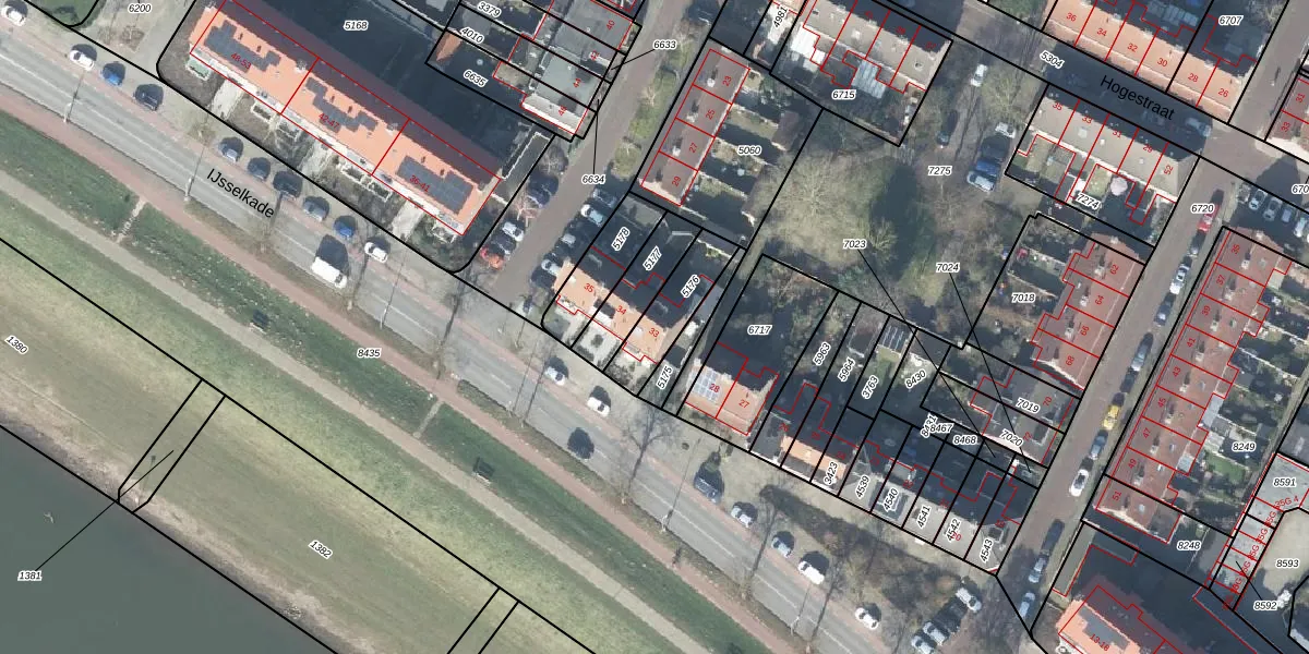 Het perceel waarop IJsselkade 33 staat heeft een oppervlakte van 176 m². Dit is een middelgroot perceel. De perceeloppervlakte wordt geregistreerd door het Kadaster. Gedetailleerde informatie over de maten van dit perceel kunt u vinden in het rapport Kadastrale kaart met maatvoering van IJsselkade 33.