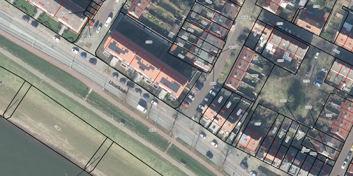 Het perceel waarop IJsselkade 37 staat heeft een oppervlakte van 1610 m². Dit is een zeer groot perceel. De perceeloppervlakte wordt geregistreerd door het Kadaster. Gedetailleerde informatie over de maten van dit perceel kunt u vinden in het rapport Kadastrale kaart met maatvoering van IJsselkade 37.