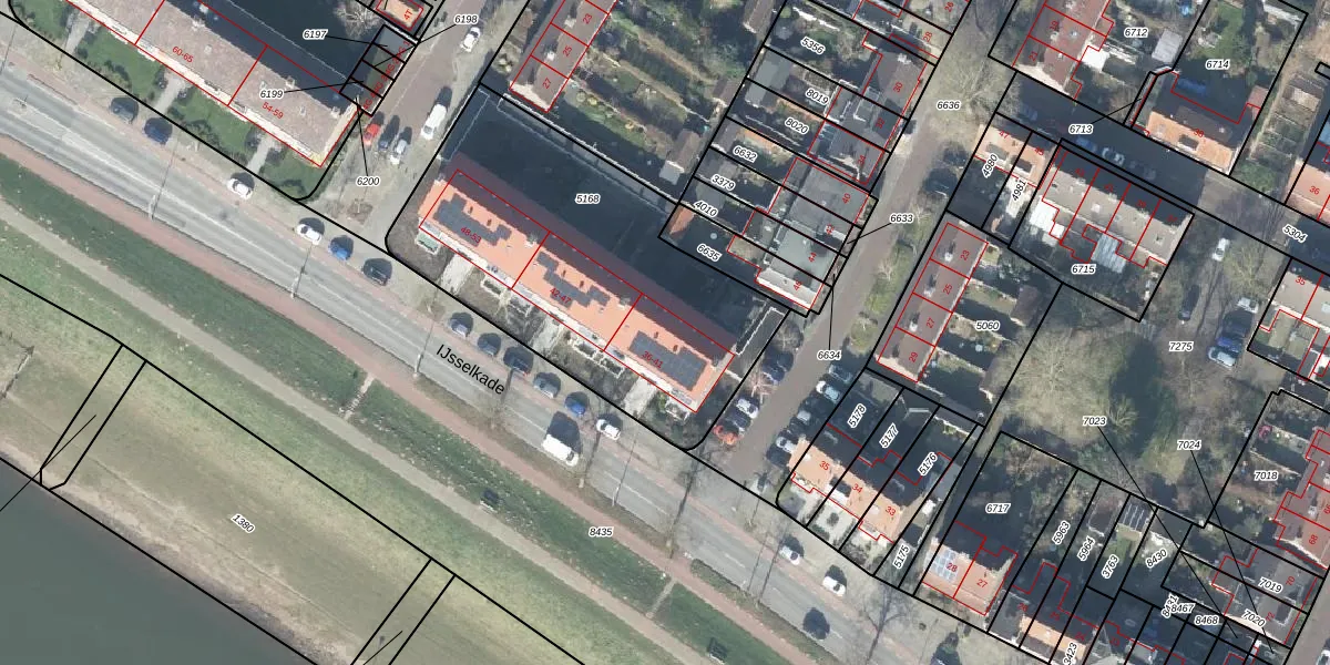 Het perceel waarop IJsselkade 39 staat heeft een oppervlakte van 1610 m². Dit is een zeer groot perceel. De perceeloppervlakte wordt geregistreerd door het Kadaster. Gedetailleerde informatie over de maten van dit perceel kunt u vinden in het rapport Kadastrale kaart met maatvoering van IJsselkade 39.