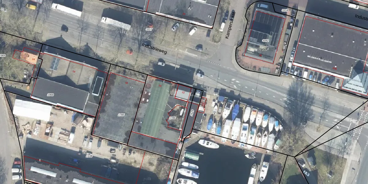 Het perceel waarop Industrieweg 22 staat heeft een oppervlakte van 1095 m². Dit is een zeer groot perceel. De perceeloppervlakte wordt geregistreerd door het Kadaster. Gedetailleerde informatie over de maten van dit perceel kunt u vinden in het rapport Kadastrale kaart met maatvoering van Industrieweg 22.