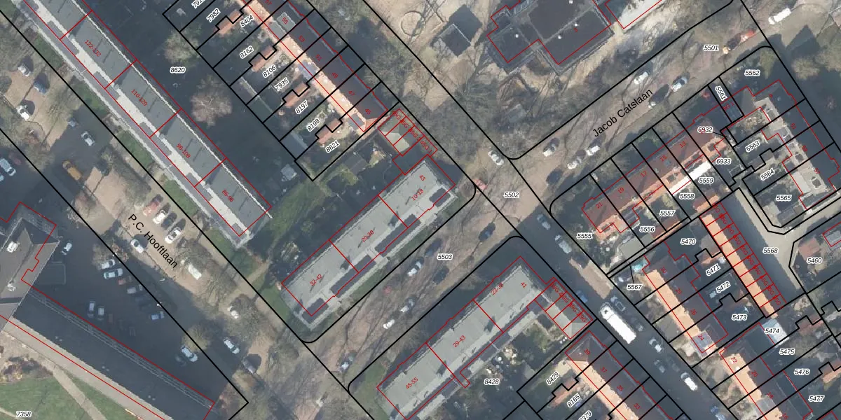 Het perceel waarop Jacob Catslaan 18 staat heeft een oppervlakte van 5752 m². Dit is een zeer groot perceel. De perceeloppervlakte wordt geregistreerd door het Kadaster. Gedetailleerde informatie over de maten van dit perceel kunt u vinden in het rapport Kadastrale kaart met maatvoering van Jacob Catslaan 18.
