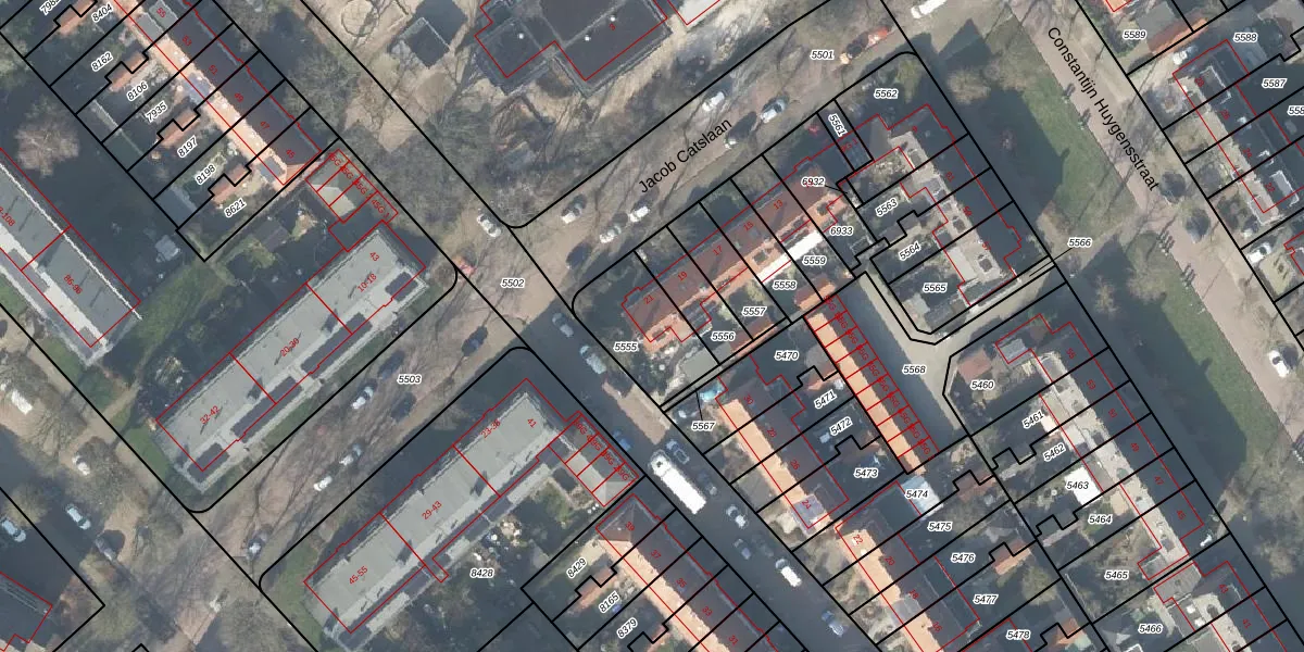 Het perceel waarop Jacob Catslaan 21 staat heeft een oppervlakte van 263 m². Dit is een middelgroot perceel. De perceeloppervlakte wordt geregistreerd door het Kadaster. Gedetailleerde informatie over de maten van dit perceel kunt u vinden in het rapport Kadastrale kaart met maatvoering van Jacob Catslaan 21.