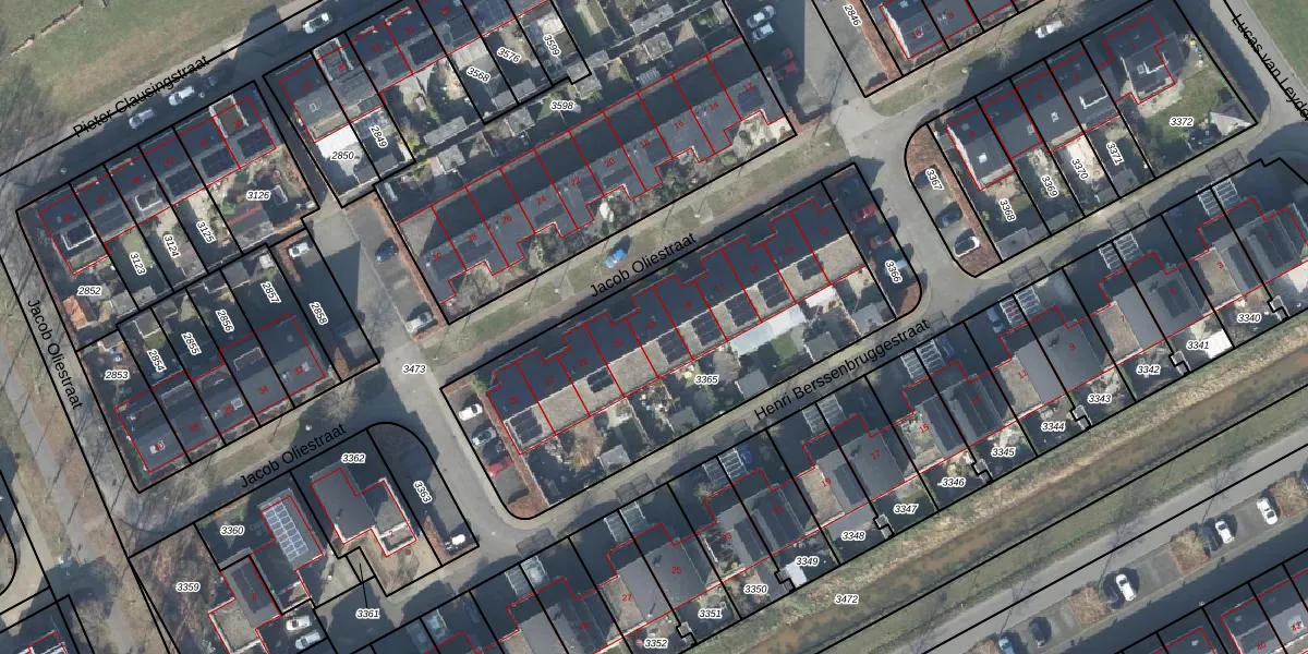Het perceel waarop Jacob Oliestraat 21 staat heeft een oppervlakte van 1598 m². Dit is een zeer groot perceel. De perceeloppervlakte wordt geregistreerd door het Kadaster. Gedetailleerde informatie over de maten van dit perceel kunt u vinden in het rapport Kadastrale kaart met maatvoering van Jacob Oliestraat 21.