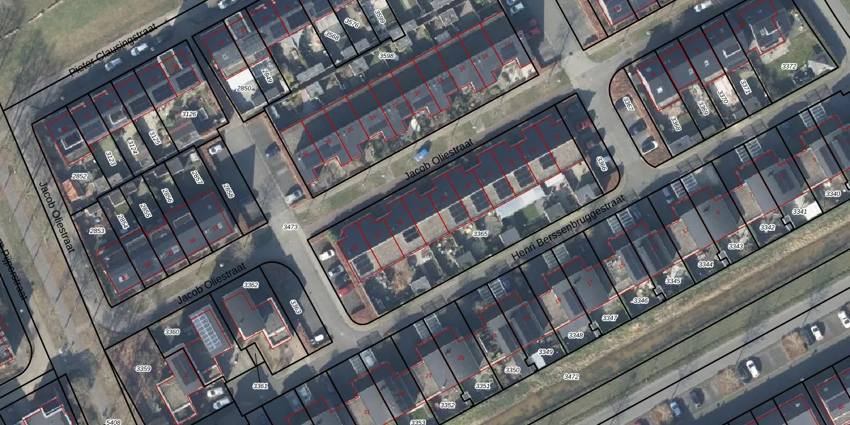 Het perceel waarop Jacob Oliestraat 23 staat heeft een oppervlakte van 1598 m². Dit is een zeer groot perceel. De perceeloppervlakte wordt geregistreerd door het Kadaster. Gedetailleerde informatie over de maten van dit perceel kunt u vinden in het rapport Kadastrale kaart met maatvoering van Jacob Oliestraat 23.