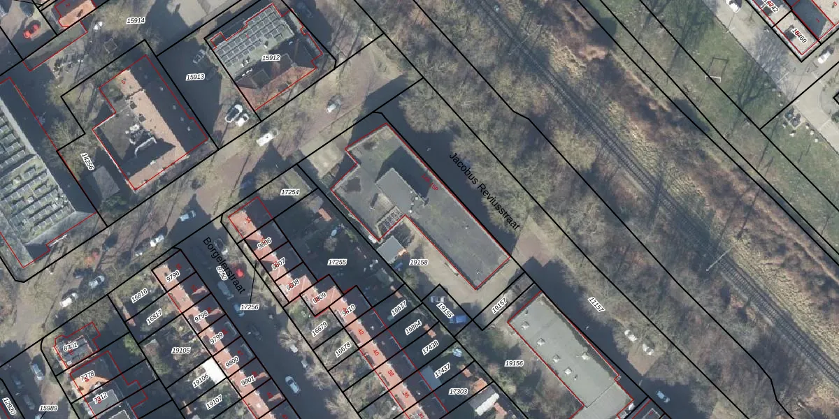 Het perceel waarop Jacobus Reviusstraat 15-H staat heeft een oppervlakte van 1177 m². Dit is een zeer groot perceel. De perceeloppervlakte wordt geregistreerd door het Kadaster. Gedetailleerde informatie over de maten van dit perceel kunt u vinden in het rapport Kadastrale kaart met maatvoering van Jacobus Reviusstraat 15-H.