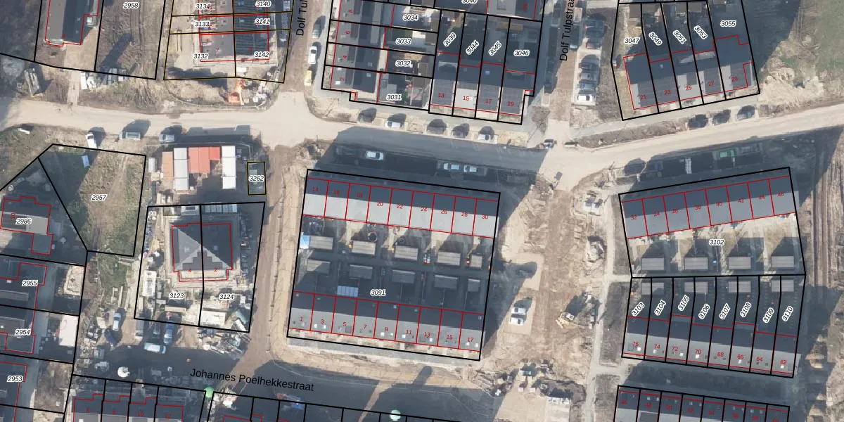 Het perceel waarop Jan Stoffelstraat 24 staat heeft een oppervlakte van 1835 m². Dit is een zeer groot perceel. De perceeloppervlakte wordt geregistreerd door het Kadaster. Gedetailleerde informatie over de maten van dit perceel kunt u vinden in het rapport Kadastrale kaart met maatvoering van Jan Stoffelstraat 24.