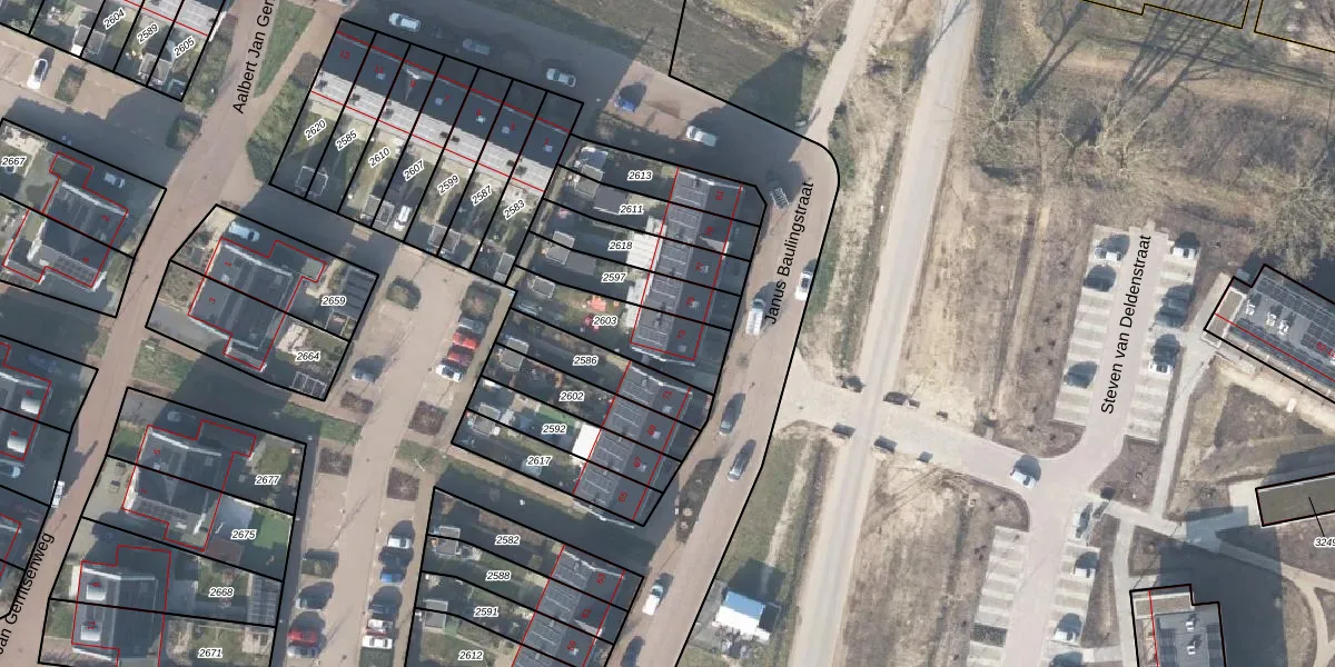 Gebruik de zoekbalk of klik op een perceel voor informatie over de adressen binnen dit perceel.