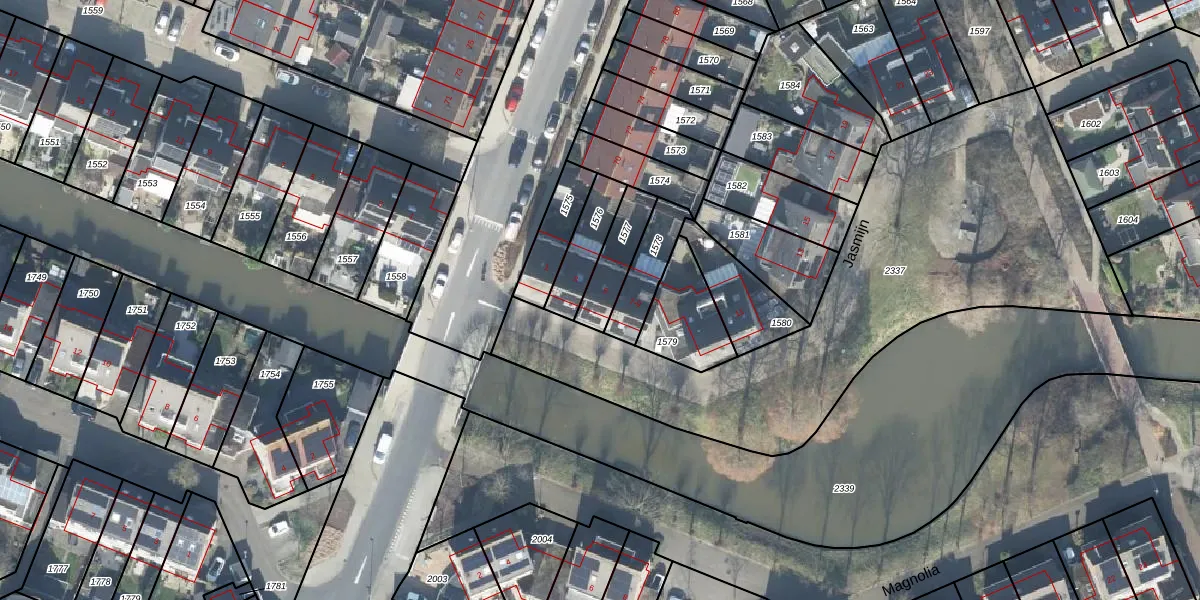 Het perceel waarop Jasmijn 5 staat heeft een oppervlakte van 133 m². Dit is een middelgroot perceel. De perceeloppervlakte wordt geregistreerd door het Kadaster. Gedetailleerde informatie over de maten van dit perceel kunt u vinden in het rapport Kadastrale kaart met maatvoering van Jasmijn 5.