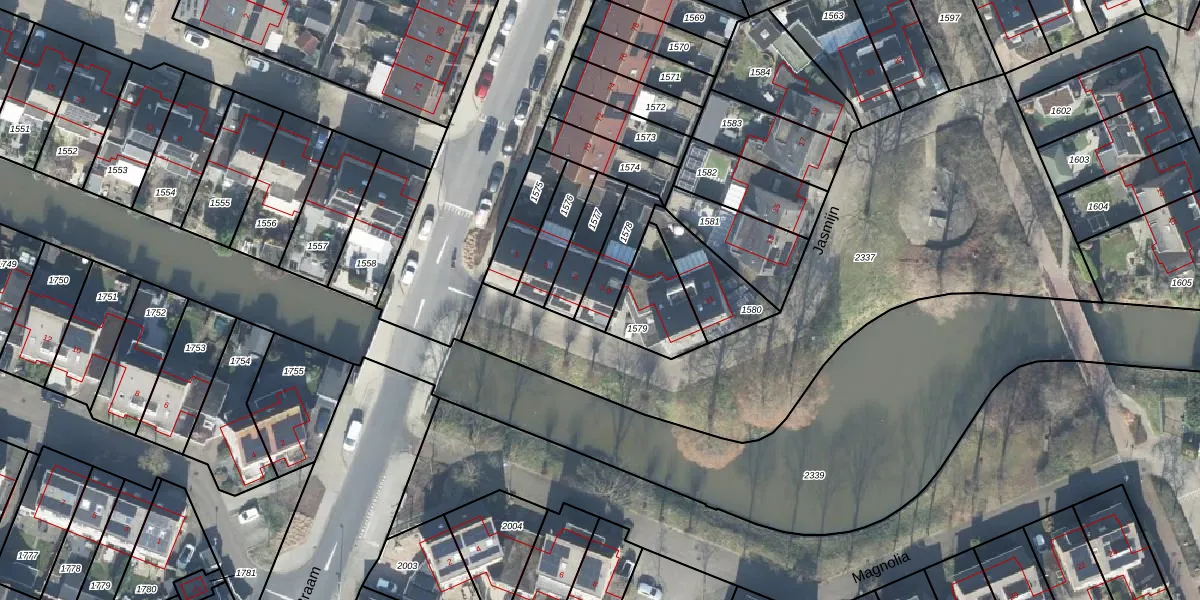 Het perceel waarop Jasmijn 7 staat heeft een oppervlakte van 138 m². Dit is een middelgroot perceel. De perceeloppervlakte wordt geregistreerd door het Kadaster. Gedetailleerde informatie over de maten van dit perceel kunt u vinden in het rapport Kadastrale kaart met maatvoering van Jasmijn 7.